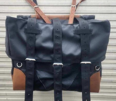 Our Bear Cloth Panniers have contoured lids, 3 x 2” heavy duty polypropylene webbing all the way around the pannier and reinforced leather corners. Along with the outstanding strength of the actual iron cloth material, it makes these panniers one of the best items on the market. The top straps are 1 1/4" wide x 44" long.